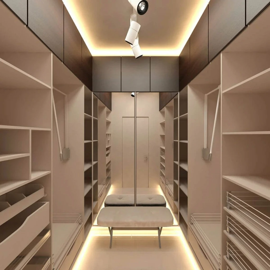 Прежде всего, необходимо определиться с размером будущей гардеробной. Учитывайте количество членов семьи и их потребности в хранении одежды, аксессуаров, обуви, сумок и других предметов гардероба. Не забудьте учесть пространство для хранения сезонных вещей, таких как зимние куртки и летние платья.Расположение гардеробной также играет важную роль. Она должна быть расположена вблизи спальни или гостиной, чтобы обеспечить удобство доступа к вещам. Если у вас есть возможность, разместите гардеробную в отдельном помещении или же выделите часть комнаты под ее обустройство.2. Создайте план гардеробной