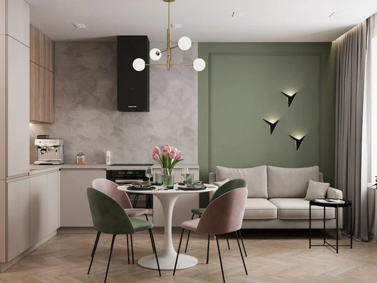 Цветовая палитра играет важную роль в оформлении помещения. Выберите несколько основных и акцентных цветов, которые будут использоваться во всех зонах. Гармония цветов создаст непрерывность и поможет связать разные помещения, сделав их визуально более цельными.