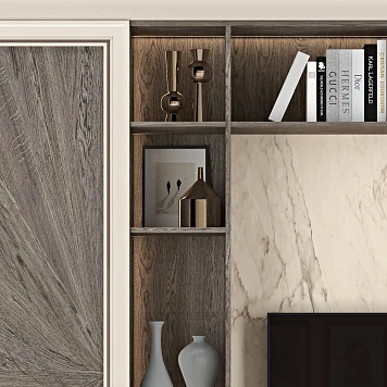 ТВ-стенка Йорк украсит вашу гостиную. Добавит уюта комнате сочетание дерева и имитации мрамора. Дерево олицетворяет силу, тепло, благородство. В гармонии с многогранным камнем помещение станет притягательнее.