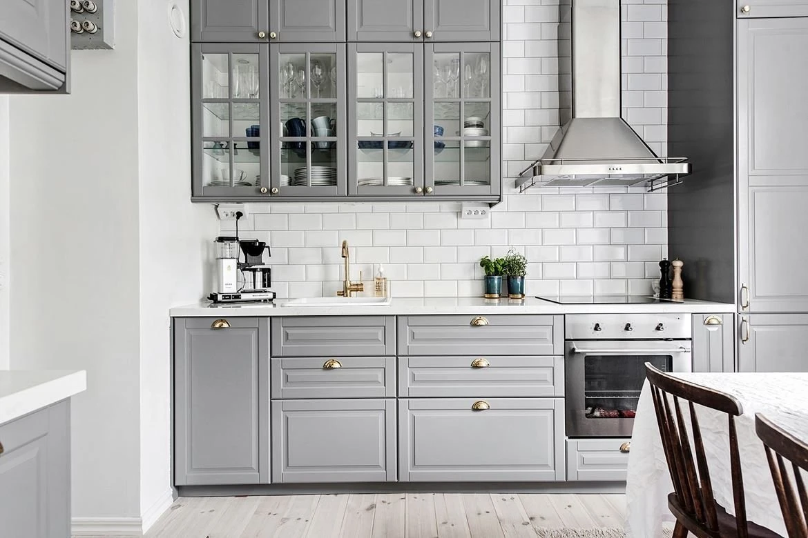 Черный цвет на кухне может стать смелым акцентом, но важно использовать его с умеренностью, чтобы не перегрузить интерьер. Такая столешница создаст контраст с серыми шкафами, придавая кухне стильный и современный вид.