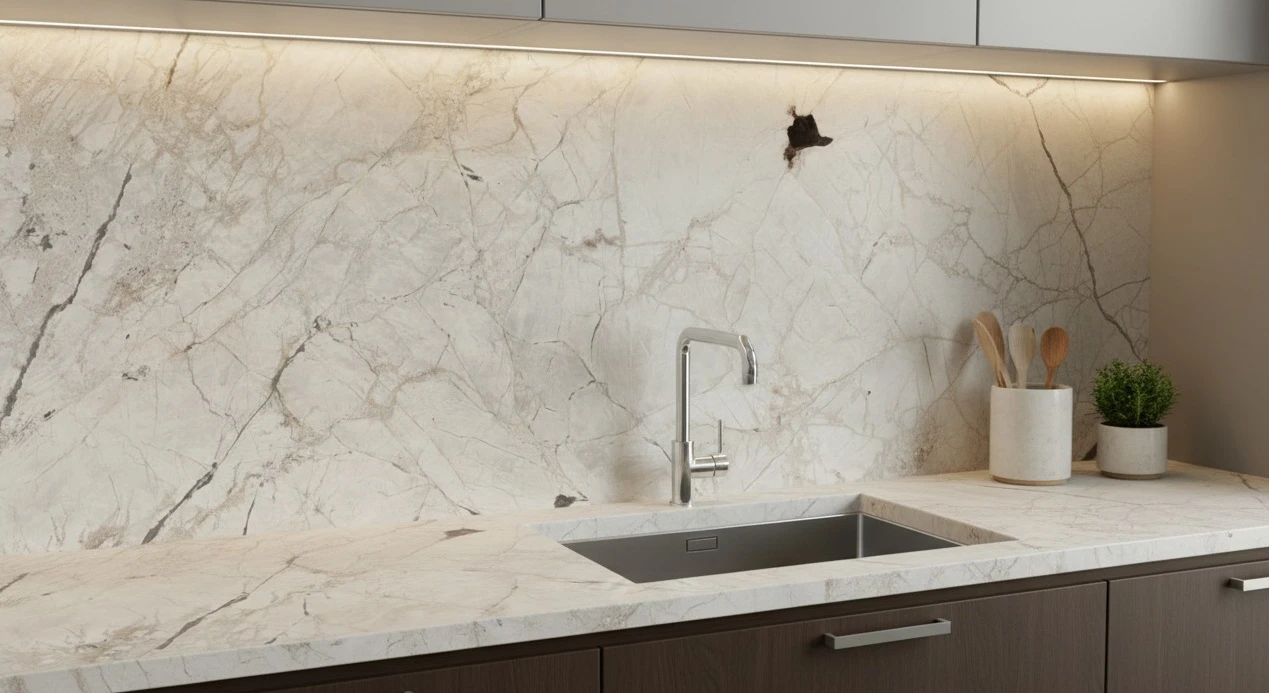 Популярность такого решения связана не только с эстетикой, но и с простотой монтажа: панели устанавливаются быстрее плитки и не требуют тщательной подготовки поверхности. Ещё один плюс — возможность точно подобрать оформление под фасады мебели, столешницу и технику, чтобы создать гармоничный интерьер без визуальных разрывов.