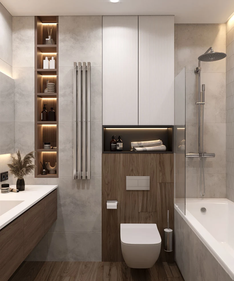 При выборе мебели для ванной, учитывайте не только эстетические аспекты, но и функциональность. Например, если ванная небольшая, предпочтение стоит отдать компактным моделям. Рассмотрите возможность установки встроенных шкафов или полок для максимальной оптимизации пространства. Зеркала также могут выполнять роль функциональных элементов, добавляя визуального объема ванной.