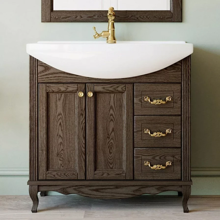 • Массив. При правильной обработке влагостойкими лаками или красками, дерево может стать прочным и эстетичным материалом для мебели в ванной. Древесина добавляет тепло и натуральность.