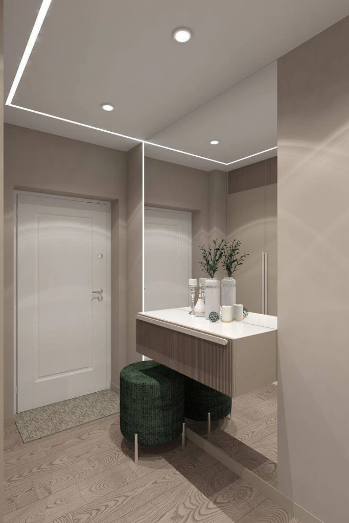 - Высокие зеркала – визуальный обман! Они не только позволят оценить свой образ перед выходом, но и визуально увеличат пространство прихожей. Зеркальные дверцы шкафов – отличное решение!