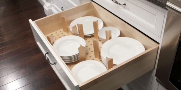 Организация. Внутри ящика можно установить разделители, держатели для тарелок, контейнеры. Хранение становится структурированным, а кухня выглядит аккуратнее.