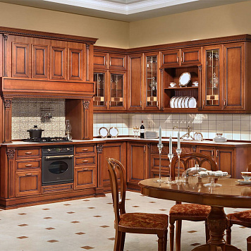 Кухня «Модо» является подлинным шедевром производственной гаммы фабрики «Анонс». Отличием данной модели является широкий потенциал индивидуализации и гармоничное сочетание различных стилей. При выборе кухни заказчик имеет все возможности для изменения ее облика благодаря резным колоннам из дерева, которые могут быть установлены на заказ, а также выбора различных типов корпуса из массива либо со шпоновой отделкой.