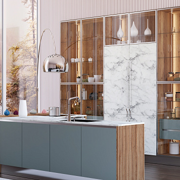 Все механизмы гарнитура работают идеально: дверцы открываются плавно и бесшумно, имеется множество полочек и приспособлений для размещения посуды и продуктов. Утренняя чашка горячего бодрящего напитка на кухне с мебелью «Гала» зарядит вас энергией и силой на весь день, стимулируя к творчеству и созиданию. Лучшие интерьерные решения от дизайнеров компании «АНОНС» воплотились в этом гарнитуре – стильном, грациозном, элегантном.