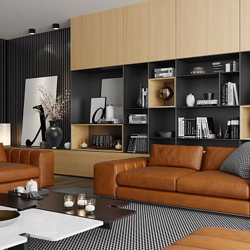 Гостиная Брера — это сочетание лаконичности и уюта, где современный минимализм обретает мягкость за счёт натуральных оттенков и текстур. Тёплые тона древесины гармонично сочетаются с глубокими графитовыми акцентами, создавая сбалансированный интерьер с характером.