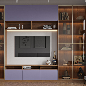 Сочетание цветов на фотографиях подойдет классическому или современному дизайну. Можете выбрать, в какой палитре будет стенка, став ее автором. Оттенок древесины вы тоже можете выбрать сами. Кстати, с деревом будут хорошо смотреться любые цвета. Если нужно, мы поможем в выборе, а наш дизайнер глубоко погрузится в проект и расскажет, какие сочетания подойдут вашему дому.