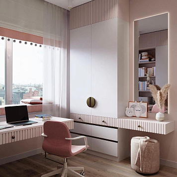 "Квадрика" — это комната, которая сочетает в себе функциональность и стильный дизайн. Простые, но выразительные линии фасадов создают атмосферу порядка и ясности. Эта комната станет идеальным решением для подростка, который нуждается в пространстве для учебы, отдыха и общения, где каждая деталь на своем месте.