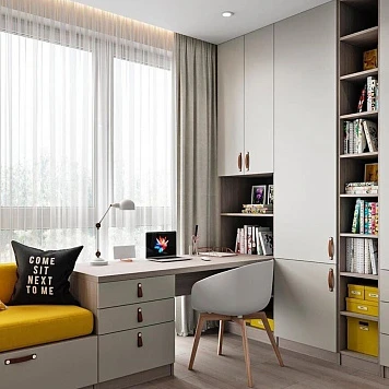 Подростковая комната — это место, где формируется личность, где можно мечтать, учиться и отдыхать. Мы предлагаем продуманные и стильные решения для создания пространства, которое будет вдохновлять подростков на самовыражение. Современные и практичные элементы дизайна позволят создать атмосферу, которая поддержит их в любой деятельности, будь то учеба, творчество или общение с друзьями.