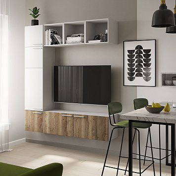 Коллекция Браво — это современное решение для квартиры, где кухня, гостиная и прихожая выполнены в едином стиле. Дизайн объединяет лаконичность, комфорт и продуманную функциональность.