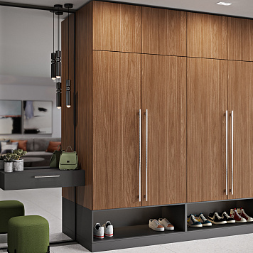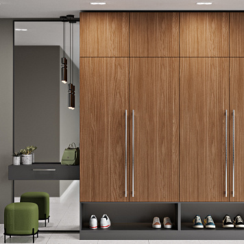 Прихожая — это неотъемлемая часть любого пространства. Она спрячет визуальный шум, одежду и даже станет настоящим акцентом интерьера. Учитывайте, где будет стоять шкаф, сколько должен вмещать и каким будет пространство рядом. Учитывайте габариты, материал и цветовое решение. Часто отличным решением будет позвать замерщика и дизайнера.