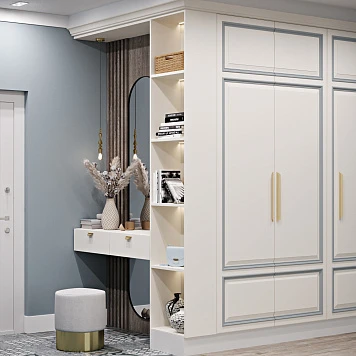 Прихожая — это неотъемлемая часть любого пространства. Она спрячет визуальный шум, одежду и даже станет настоящим акцентом интерьера. Учитывайте, где будет стоять шкаф, сколько должен вмещать и каким будет пространство рядом. Учитывайте габариты, материал и цветовое решение. Часто отличным решением будет позвать замерщика и дизайнера.