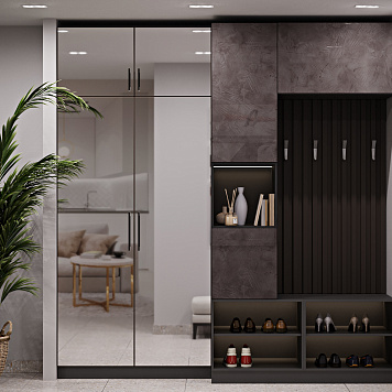 Прихожая — это неотъемлемая часть любого пространства. Она спрячет визуальный шум, одежду и даже станет настоящим акцентом интерьера. Учитывайте, где будет стоять шкаф, сколько должен вмещать и каким будет пространство рядом. Учитывайте габариты, материал и цветовое решение. Часто отличным решением будет позвать замерщика и дизайнера.
