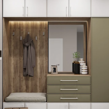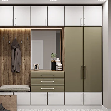 Прихожая — это неотъемлемая часть любого пространства. Она спрячет визуальный шум, одежду и даже станет настоящим акцентом интерьера. Учитывайте, где будет стоять шкаф, сколько должен вмещать и каким будет пространство рядом. Учитывайте габариты, материал и цветовое решение. Часто отличным решением будет позвать замерщика и дизайнера.