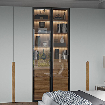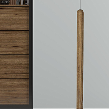 Шкаф Мишель для ценителей минимализма. Он обладает несколькими закрытыми секциями для хранения с удобными полками. Двери с удобным механизмом открывания. Дверцы секций посередине оснащены удобными стильными ручками, которые практически незаметны. Также они имеют стекла. Это позволяет видеть расположенные книги, вазы и сувениры. Мишель - это решение для интерьера. Особенно он впишется в гостиную.