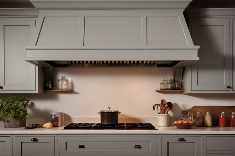 Настенные вытяжки крепятся на стену над плитой. Эти вытяжки полностью видны, поэтому при их выборе важно учитывать дизайн, чтобы он гармонировал с интерьером кухни. Самые распространенные дизайны настенных вытяжек — купольные и наклонные. Купольные вытяжки напоминают камин с дымоходом и требуют подключения к воздуховоду. Наклонные вытяжки популярны в современных интерьерах благодаря разнообразию оттенков и материалов, компактности и низкому уровню шума.