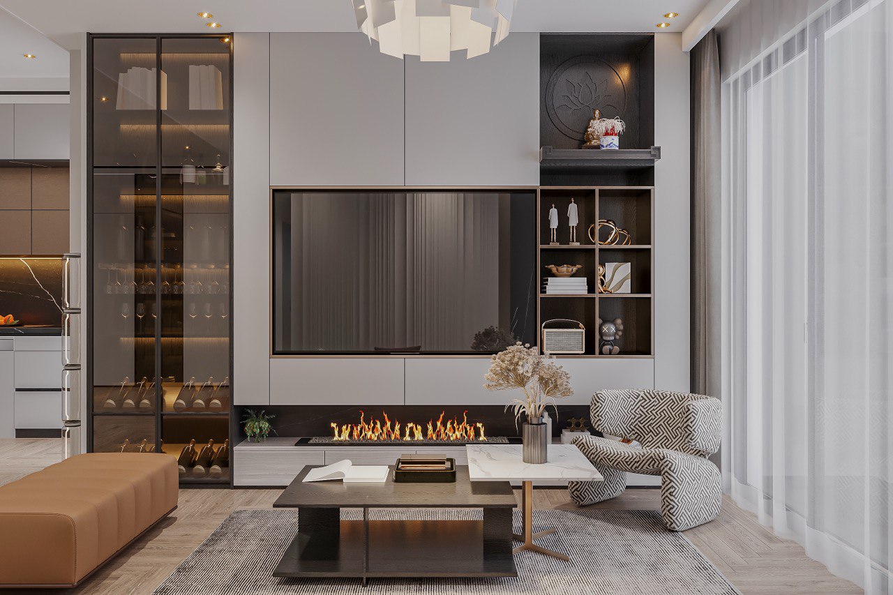 - Барная витрина с подсветкой — именно тот акцент, которого не хватало вашей гостиной.