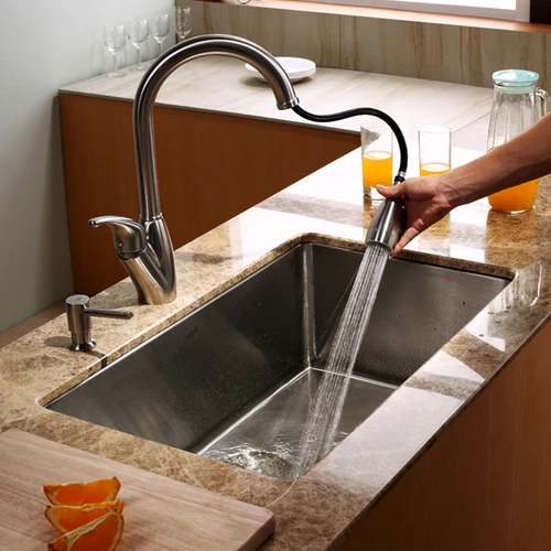 1. Выдвижной излив. Такие смесители позволяют легко направлять поток воды в нужное место, что удобно при мытье посуды и наполнении кастрюль.