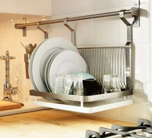 Также существуют прямые и угловые сушилки. Прямые модели имеют прямоугольную форму, а угловые отличаются более сложной конфигурацией, что позволяет эффективно использовать угловое пространство, особенно в малогабаритных кухнях.