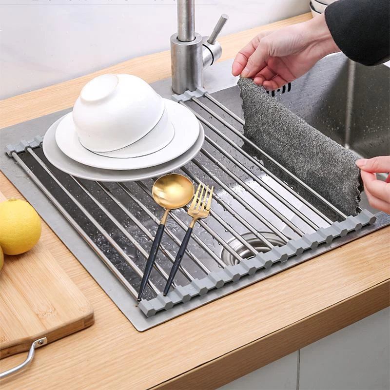 Эти сушилки устанавливаются прямо на мойку. Обычно это доска с небольшими отверстиями, решетчатое изделие или сетка. Компактные трофлексы не загромождают пространство, но подходят для небольшого количества посуды.